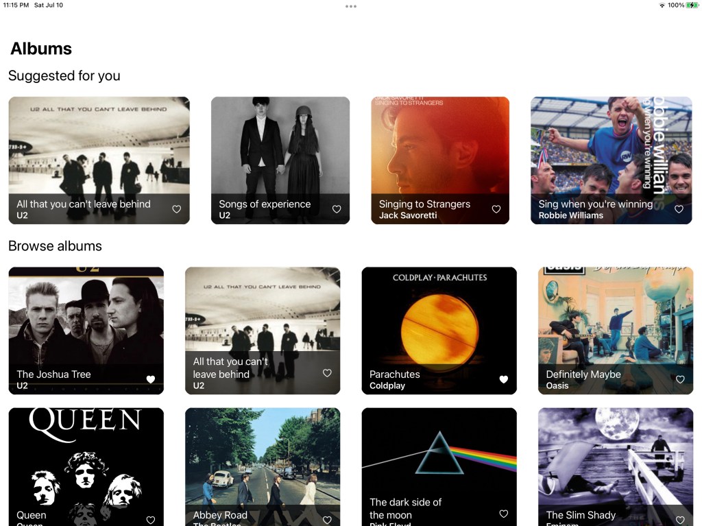 When a favorite is added, the app will try to find similar albums, based on the keywords specified in each album entry. The keywords are genre based and possibly subjective. They can be easily updated in the albums.json file in the app, if they don’t fit your musical taste. The suggestions will appear at the top of the screen.
