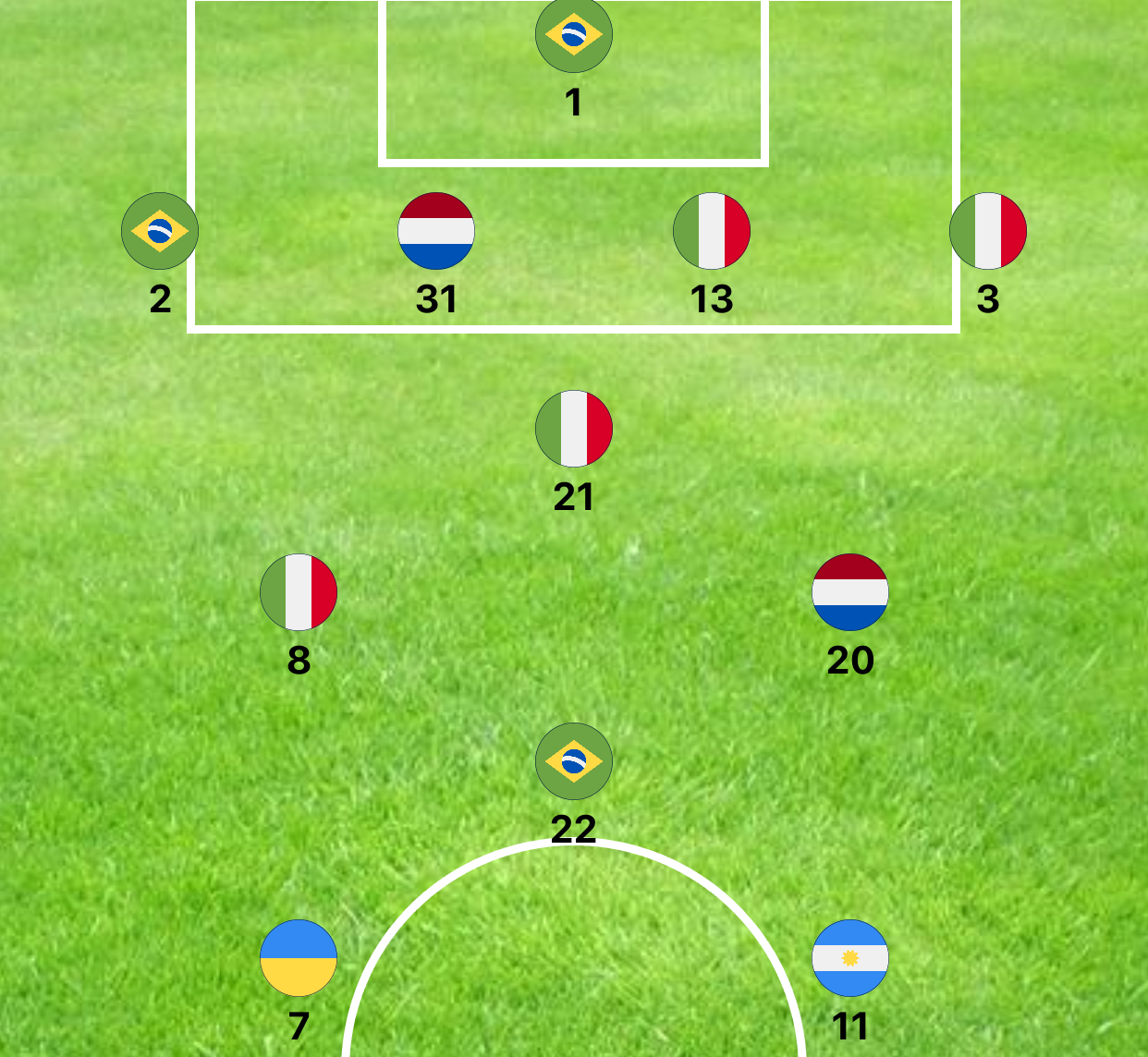 SwiftUI is perfect for this task. If you split the area in different parts (and sub-parts) for goalkeeper, defence, midfield and attack and just use spacers and offsets you can achieve very nice representation of a football formation, without doing much calculations. If I had to do this in UIKit, for sure it was going to be a lot of work.